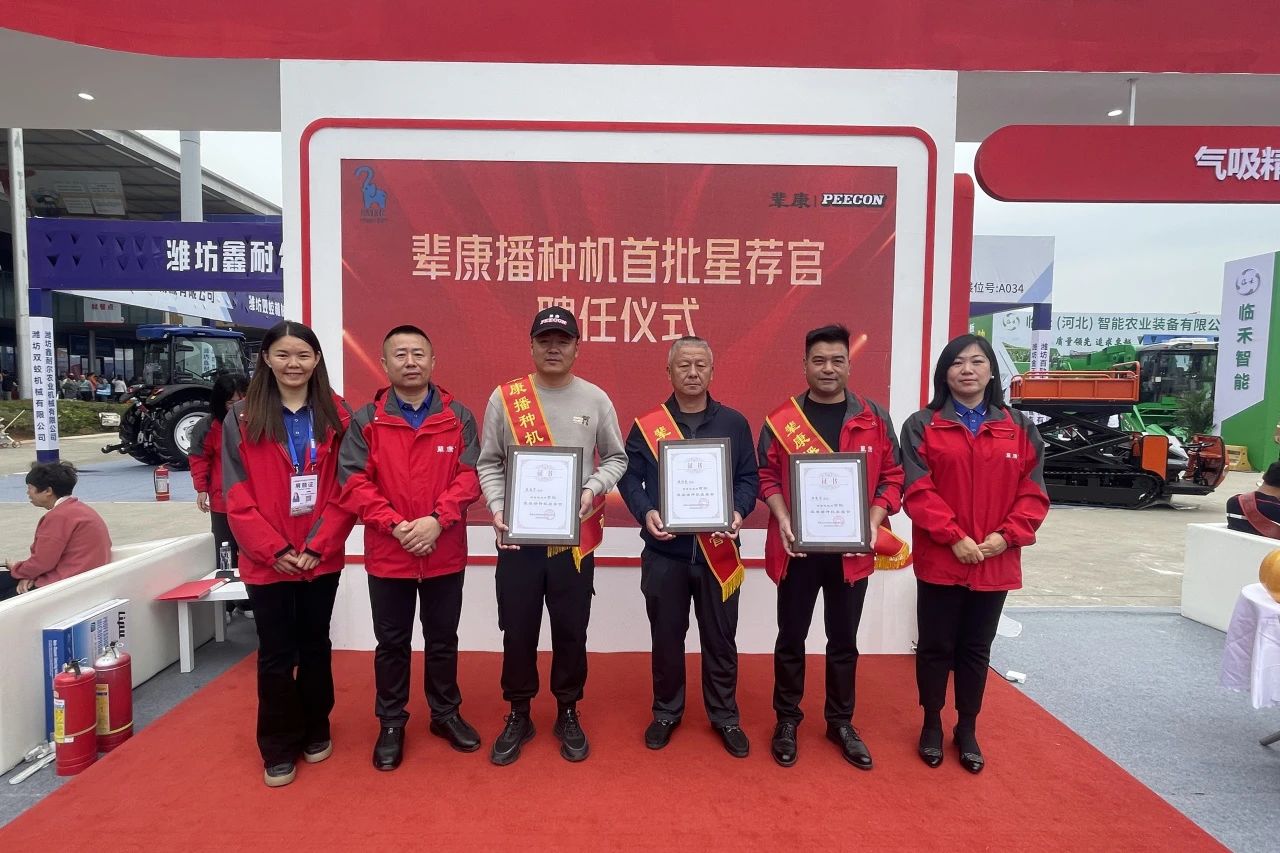10 月 26 日,2024 年中国国际农业机械展览会辈康展位,在行业领导和专家见证下,辈康播种机发布 “老用户就是推荐官” 计划,并向首批星荐官颁发证书,助力品牌发展与农户受益。